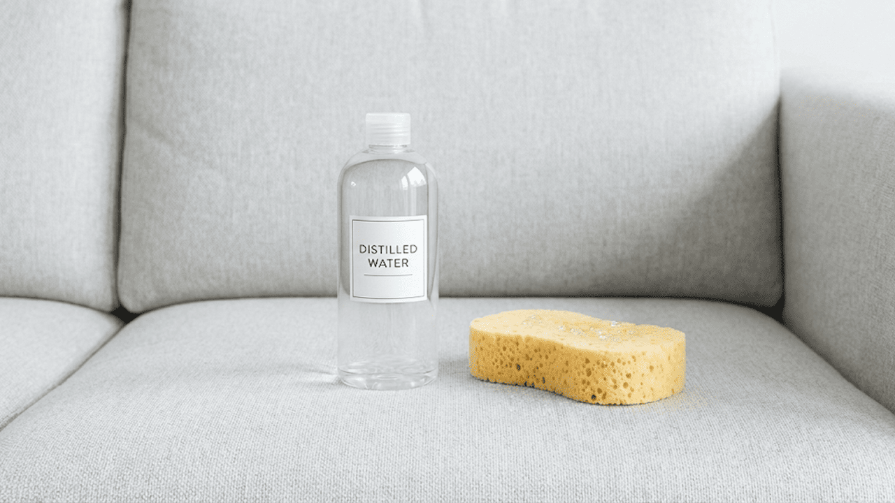 Nutze für die Reinigung von Polstermöbeln idealerweise destilliertes Wasser statt Leitungswasser. Du bekommst es günstig im Supermarkt (oft als „Bügelwasser“ bezeichnet) oder kannst das Kondenswasser aus Deinem Wäschetrockner verwenden. Destilliertes Wasser enthält keine Mineralien und hinterlässt daher keine Kalkränder – das ist der Unterschied zwischen sichtbaren Flecken und unsichtbarer Reinigung.