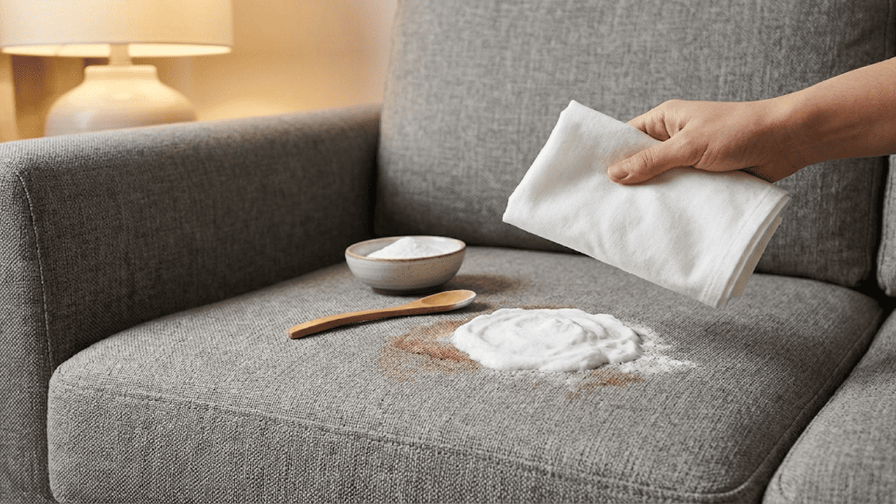 Stoffbezüge (Webstoff, Baumwolle, Mikrofaser): Hier kannst Du die meisten Hausmittel bedenkenlos einsetzen – Backpulver, Natron, Speisestärke und bei robusten Stoffen auch Salz.