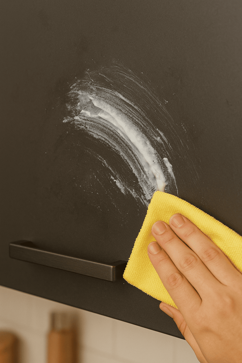 Warum Backpulver so gut funktioniert: Es ist leicht alkalisch und hat eine feine, aber nicht kratzende Struktur. Das macht es perfekt für matte Oberflächen – es reinigt gründlich, ohne zu scheuern.