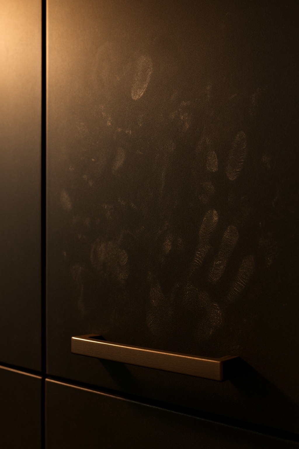 Klingt banal, macht aber einen Unterschied: Wisch dir die Hände ab, bevor du Schranktüren öffnest. Fettfinger sind die häufigste Ursache für matte Flecken auf Griffen und Fronten.