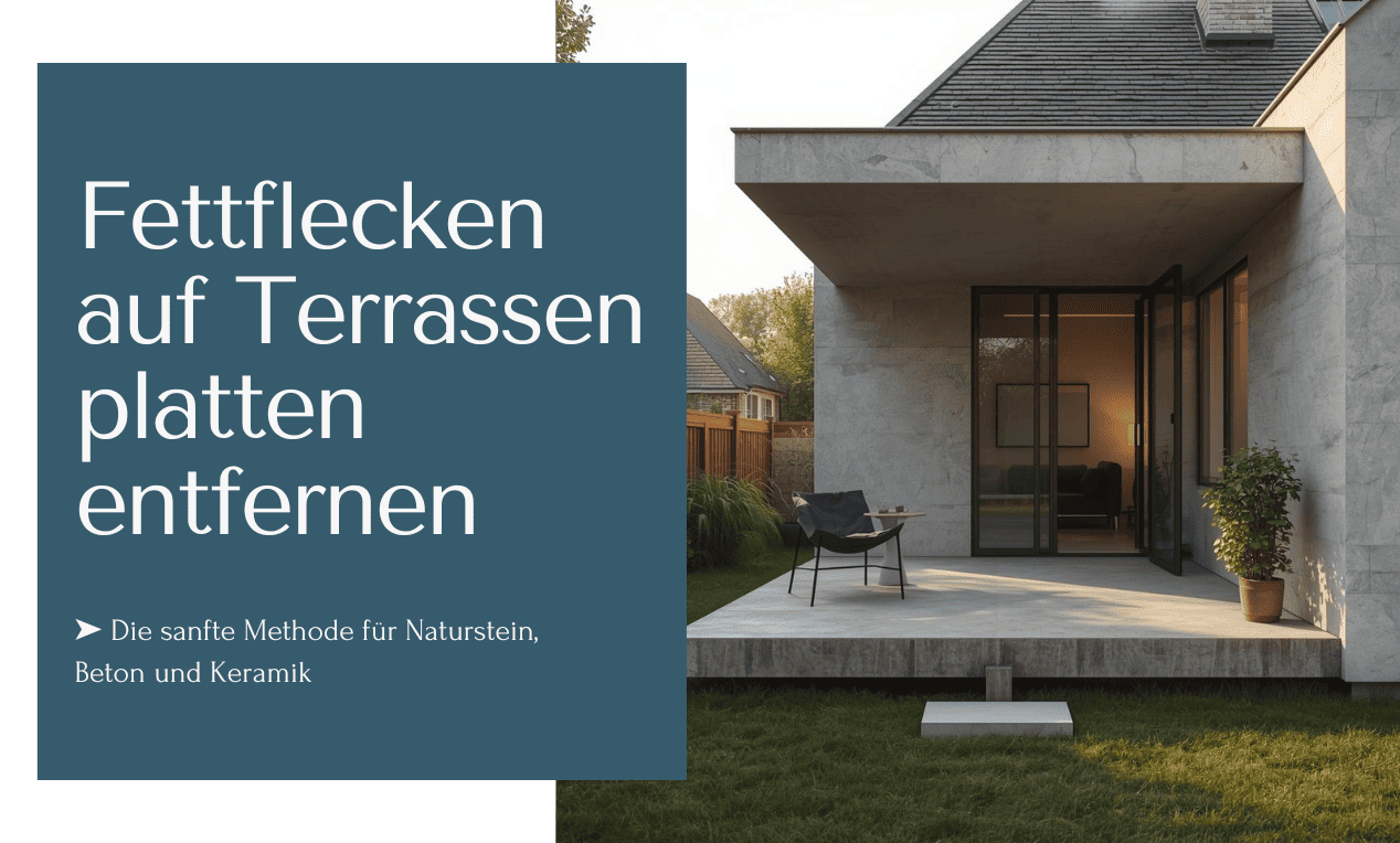 Bei alten Flecken hilft eine Poultice-Paste aus Backpulver und Spülmittel, die über Nacht einwirkt. Wichtig: Terrassenplatten vertragen keine Säuren und keinen Hochdruck. Alle Grundlagen zur Beseitigung von Verschmutzungen findest du in unserem Guide zum Fettflecken entfernen.