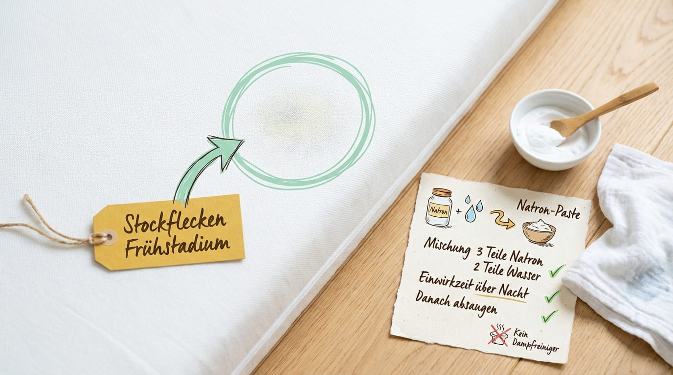 Du schlägst morgens die Bettdecke zurück und siehst es: gelblich-braune Flecken auf der Matratze, die gestern noch nicht da waren. Oder doch? Stockflecken auf der Matratze entstehen schleichend. Bis sie sichtbar werden, hat die Feuchtigkeit schon wochenlang gearbeitet.